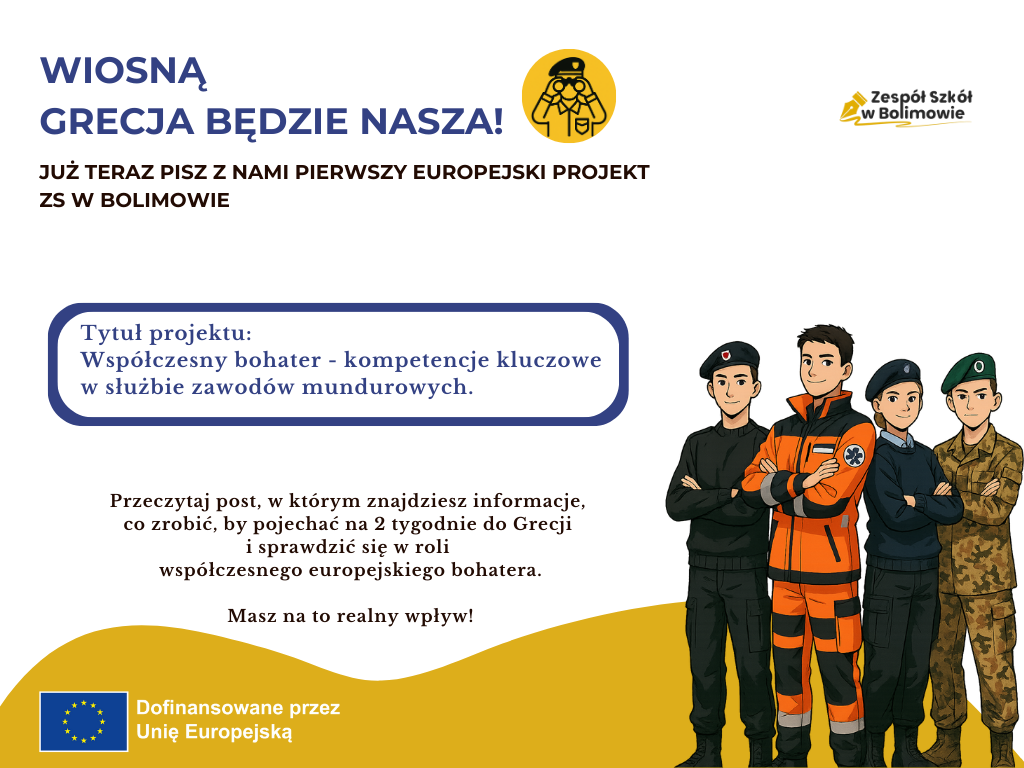Projekt Erasmus+ „Współczesny bohater – kompetencje kluczowe w służbie zawodów mundurowych”, Grecja – wiosna 2026.